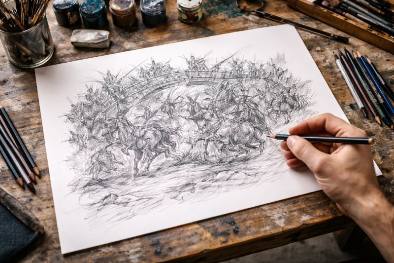 Skica služi kao osnova za sliku i pomaže umetniku da:
