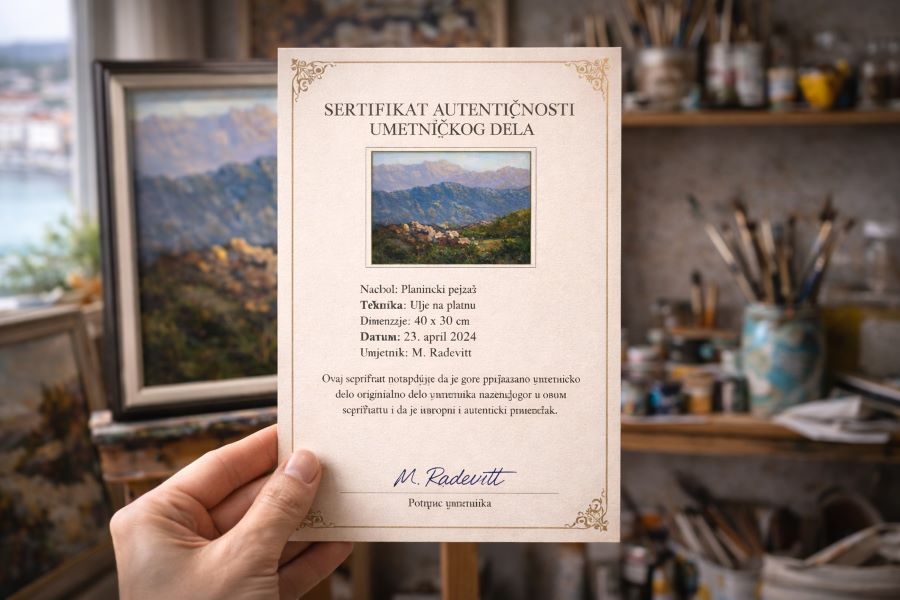 Kod profesionalnih umetnika i galerija često se izdaje sertifikat autentičnosti.